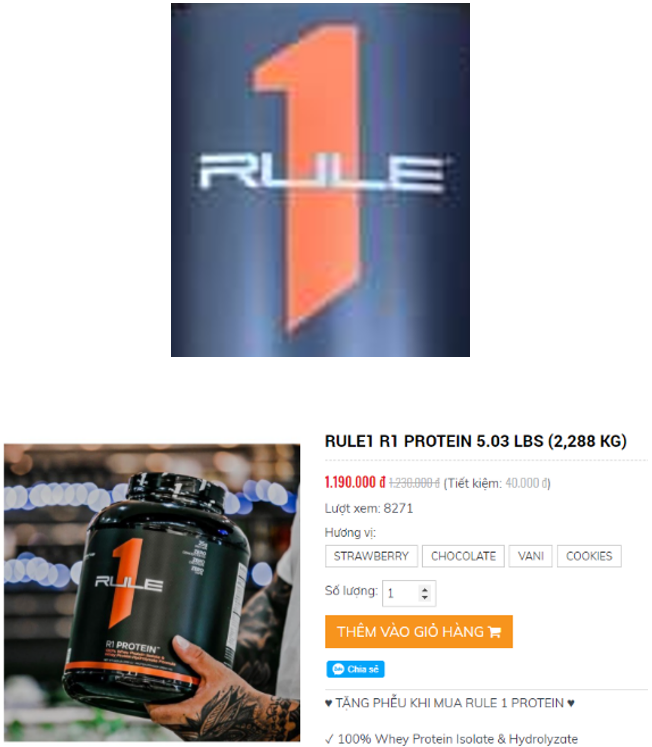 Nói đơn giản: Dù hàng có là hàng thật, thì việc đưa dấu hiệu “RULE 1 PROTEINS” lên website/Facebook để quảng cáo bán hàng tại Việt Nam là hành vi sử dụng nhãn hiệu. Và chỉ được phép thực hiện khi được RULE ONE cho phép.