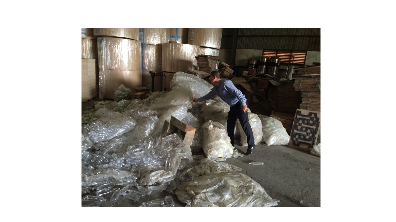 Ông Quân phát hiện kho hàng chứa chai nước rửa chén xâm phạm